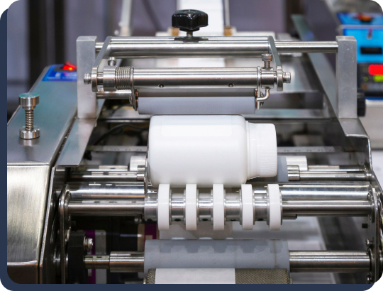 Applies self-adhesive labels to bottles for branding and product information. This machine enhances product visibility and compliance with labeling regulations, vital for marketing and consumer information.